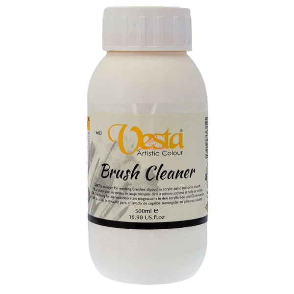 محلول قلم شور وستا جهت شستشوی کلیه قلم موهای آغشته به رنگهای اکریلیک و روغنی مناسب است