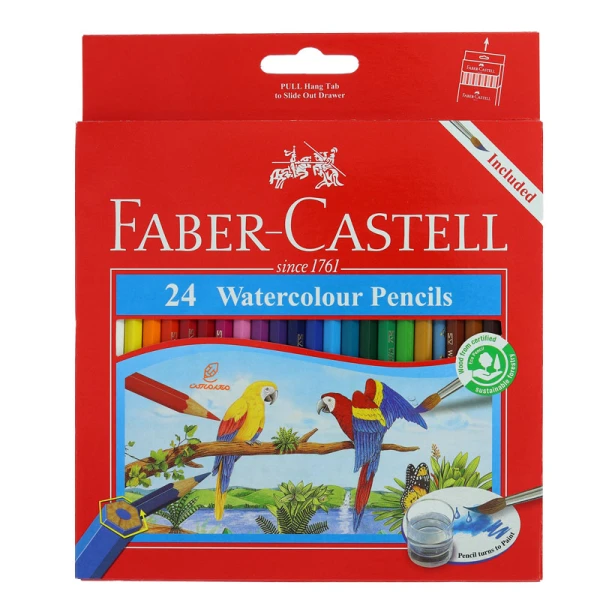 مداد آبرنگی 24 رنگ جعبه مقوایی طرح طوطی فابرکاستل FABERCASTELL