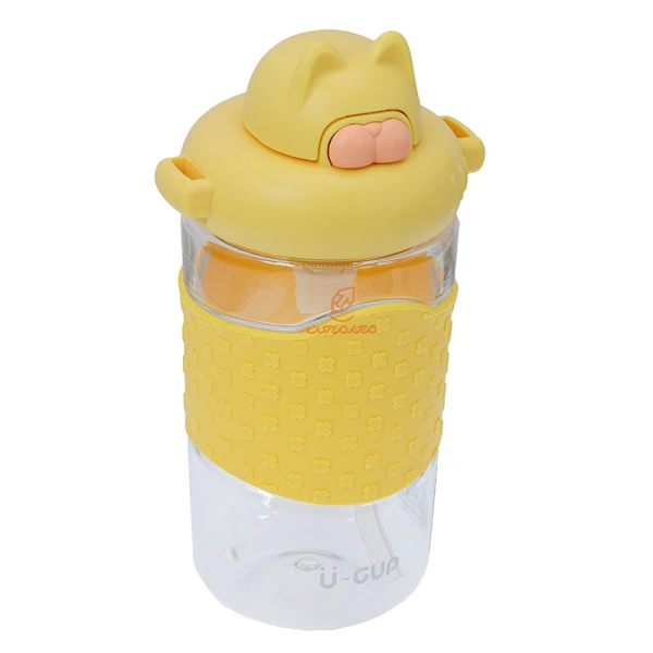 قمقمه فانتزی 480 میل 1356 زرد طرح گربه TRITAN