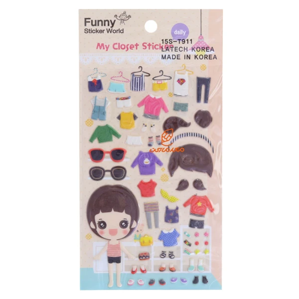 برچسب (استیکر) فانتزی کد 15S-T911 طرح لباس های دخترانه FUNNY