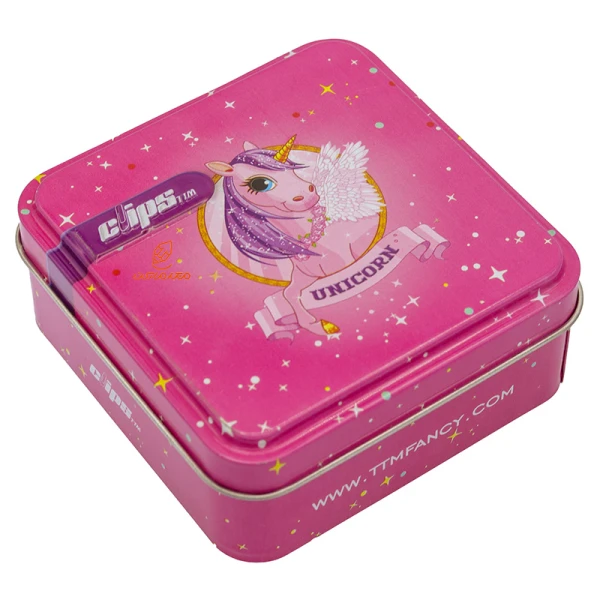 پک فانتزی صورتی طرح یونی کورن جعبه فلزی clips