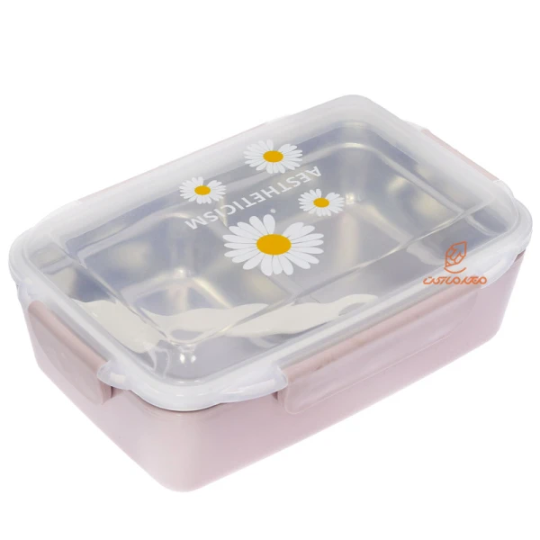 ظرف غذا دو خانه صورتی داخل استیل 2309 SANYUEYIPIN