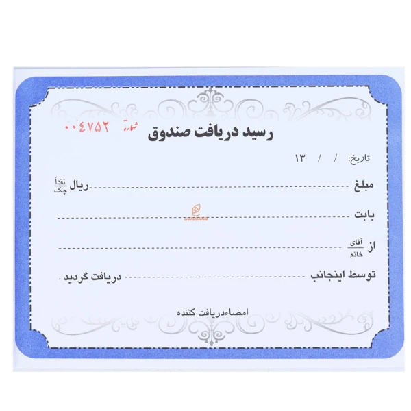 رسید دریافت صندوق تک برگ