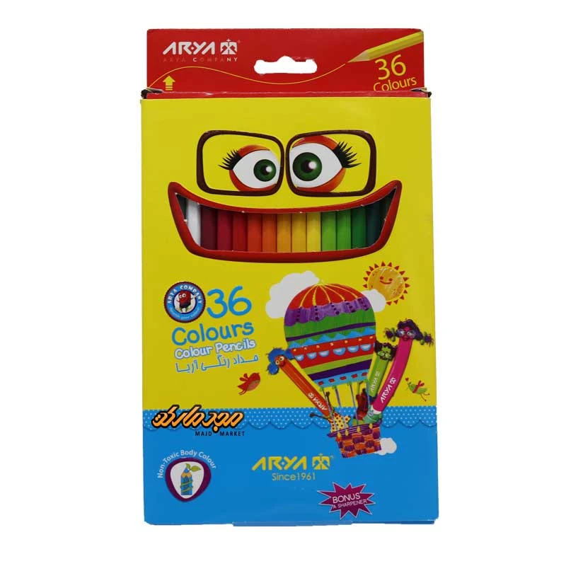 مداد رنگی 36 رنگ جعبه مقوایی آریا