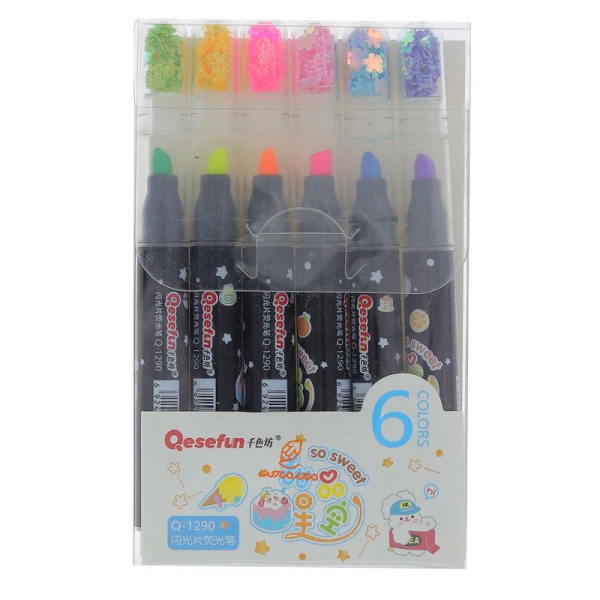 ماژیک علامت گذار 6 رنگی فانتزی سر پولک دار 3250 QESEFUN