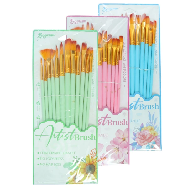 ست قلم مو میکس 12 عددی کد 3451 دسته رنگی BOYIXUAN