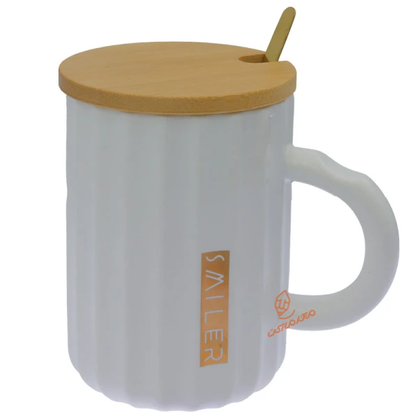 ماگ سفید درب چوبی