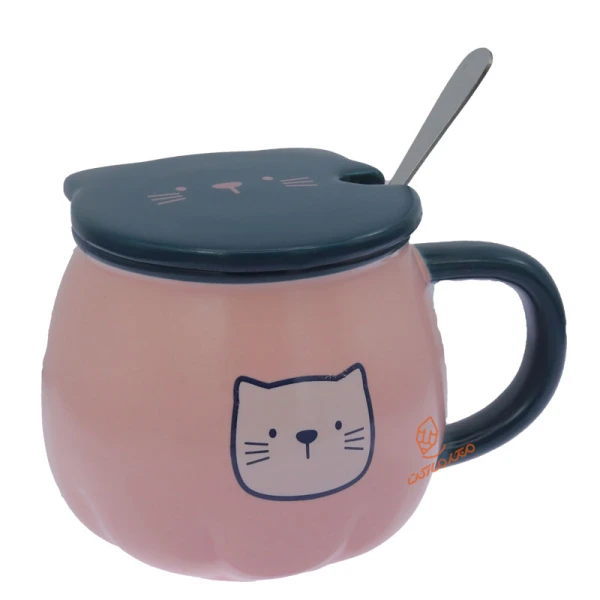 ماگ-صورتی-سبز-درب-دار-طرح-گربه