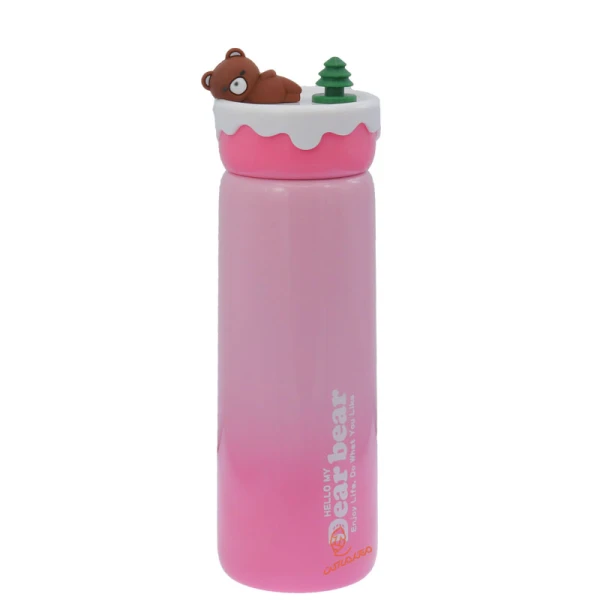 فلاسک استیل 440 میل صورتی طرح خرس و کاج 4758