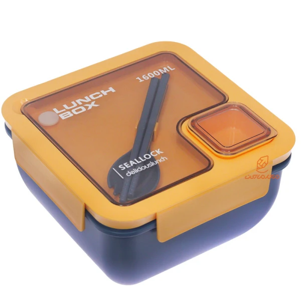 ظرف غذا مربعی دو طبقه سه خانه آبی