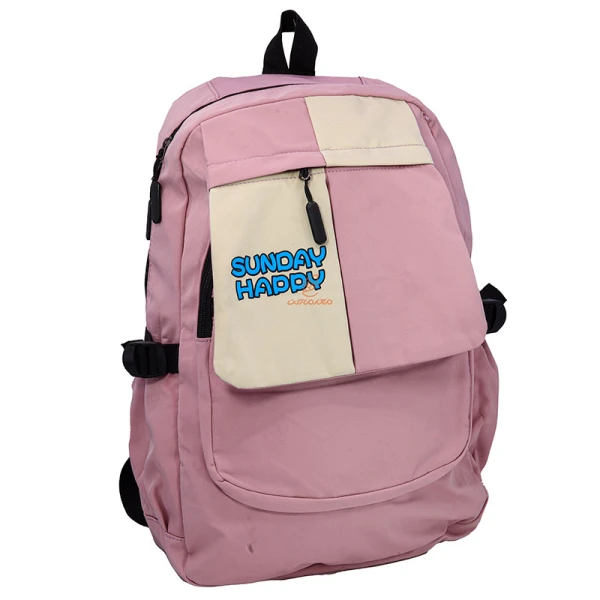کوله-پشتی-دخترانه-صورتی-کرمی-sunday-happy