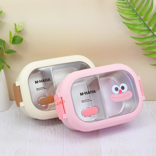 ظرف غذا 2 خانه داخل استیل طرح لبخند کد 6229