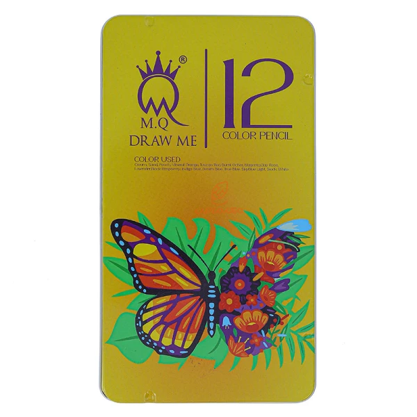 مداد رنگی 12 رنگ جعبه فلزی طرح پروانه ام کیو MQ
