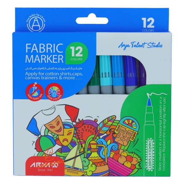 ماژیک رنگ آمیزی 12 رنگ مخصوص پارچه 9080 آریا ARIYA