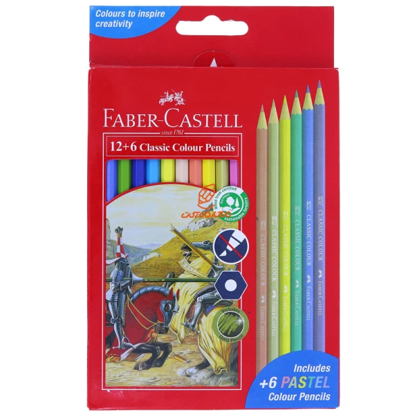 مداد رنگی 6+12 رنگی جعبه مقوایی پاستلی فابر کاستل FABERCASTELL