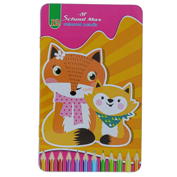 مداد رنگی 12رنگ جعبه فلزی طرح روباه اسکول مکس SCHOOL MAX