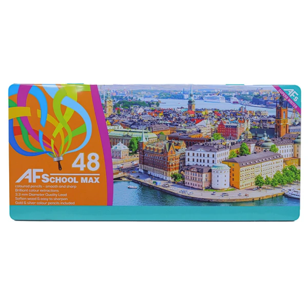 مداد رنگی 48 رنگ جعبه فلزی طرح شهر بندری اسکول مکس SCHOOL MAX