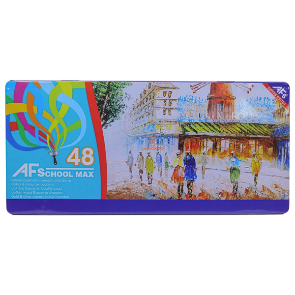 مداد رنگی 48 رنگ جعبه فلزی طرح پیاده روی اسکول مکس SCHOOL MAX