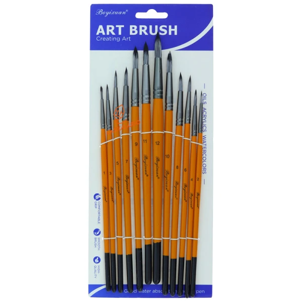 ست قلم مو سرگرد 12 عددی دسته نارنجی BOYIXUAN