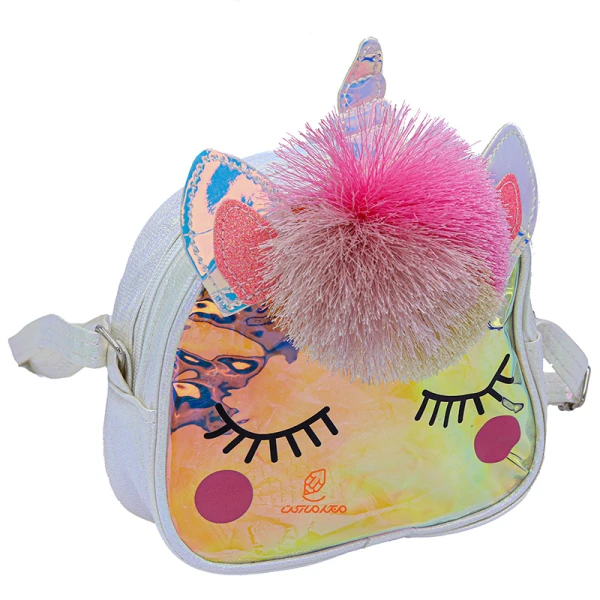 کیف فانتزی طرح یونی کورن شفاف کرم