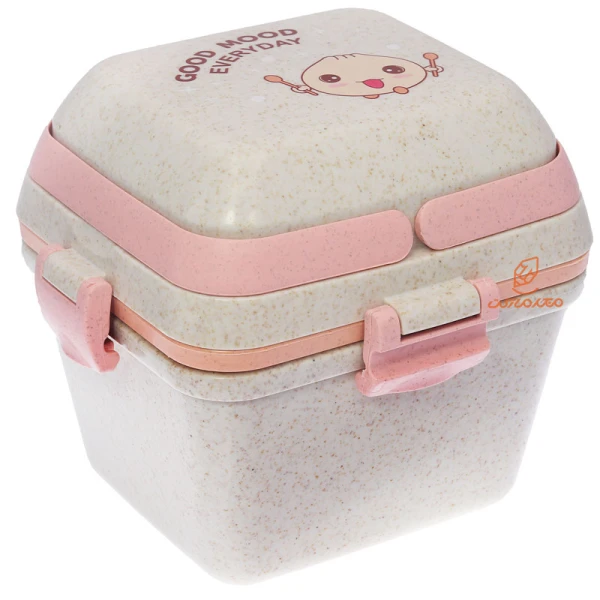ظرف غذا سه طبقه گیاهی B531 کرم صورتی