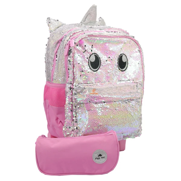 کوله پشتی چرخ دار پولکی طرح یونی کورن صورتی 2414 گلسی برد GLOSSY BIRD