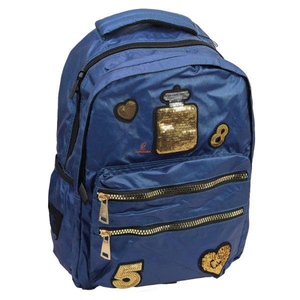 کوله پشتی دخترانه پولک دار آبی 2666 گلسی برد GLOSSY BIRD