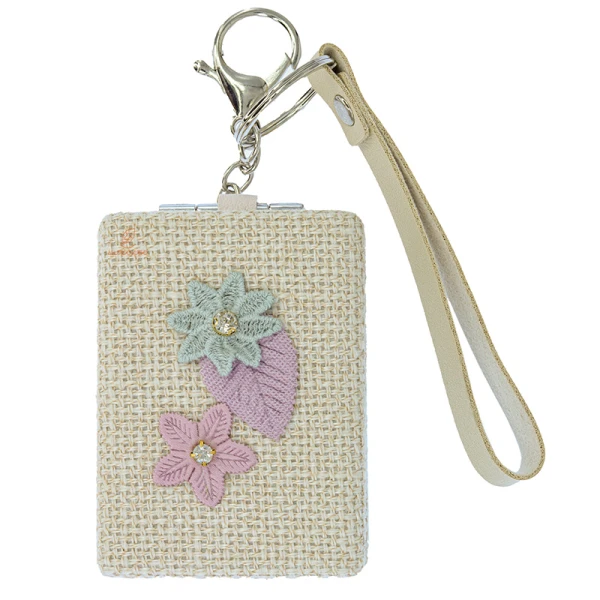 آینه مستطیلی جیبی (آرایشی) فانتزی پارچه ای طوسی طرح گل 075 (2)