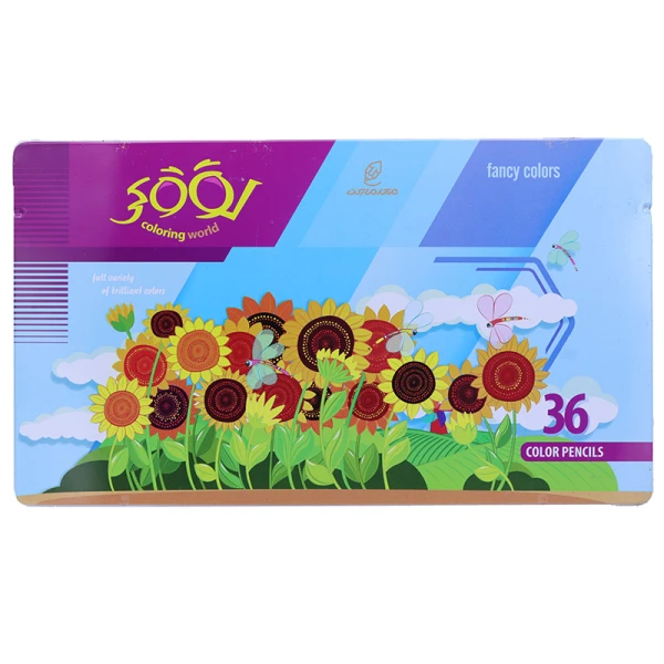 مداد رنگی 36 رنگ جعبه فلزی تخت طرح آفتابگردان لوکی LOOKY