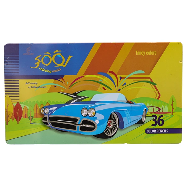 مداد-رنگی-36-رنگ-جعبه-فلزی-تخت-طرح-ماشین-ل