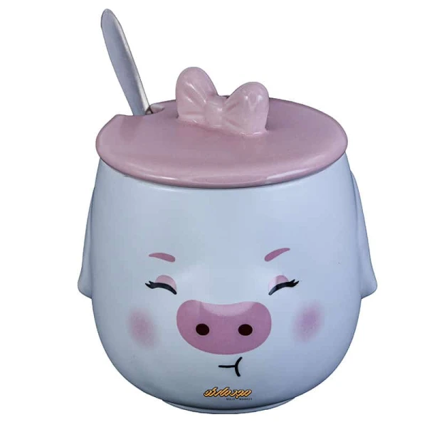 ماگ فانتزی سفید و صورتی طرح خوک چشم بسته