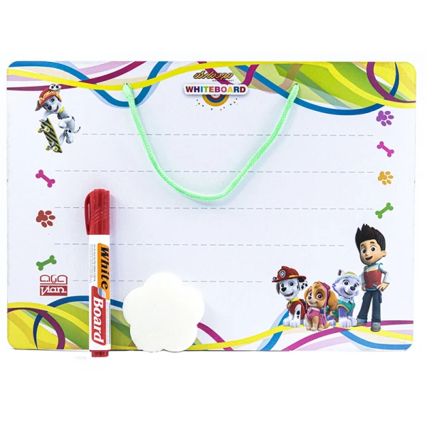 دارای یک تخته پاک کن و یک ماژیک وایت برد