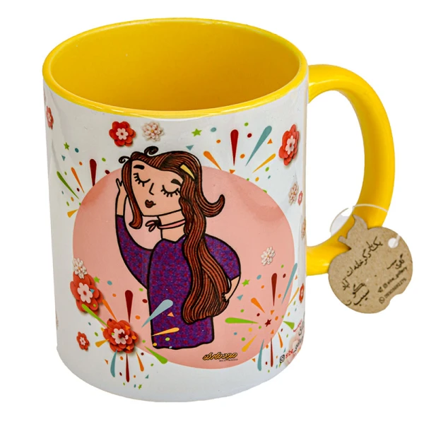 ماگ-ماه-تولد-سفید-و-زرد-طرح-دختر-تیری
