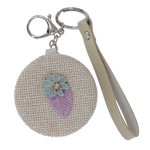 آینه گرد جیبی (آرایشی) فانتزی پارچه ای کرم طرح گل 075