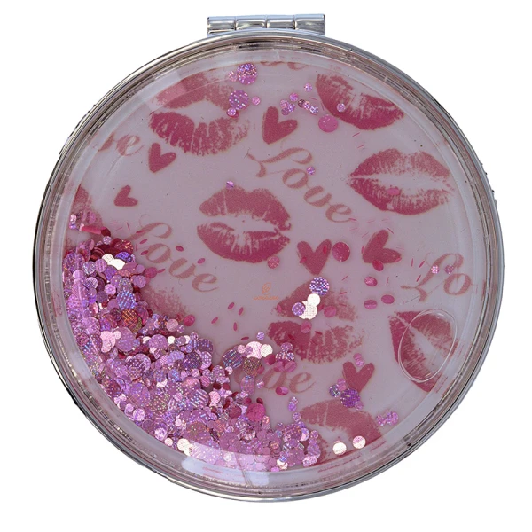 آینه گرد جیبی (آرایشی) فانتزی آکواریومی طرح لب و قلب