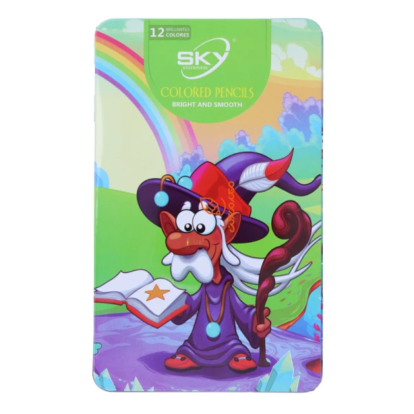 مداد رنگی 12 رنگ جعبه فلزی تخت طرح جادوگر اسکای SKY