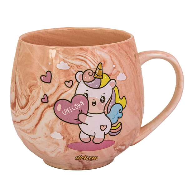 ماگ فانتزی صورتی آبرنگی طرح یونیکورن و قلب