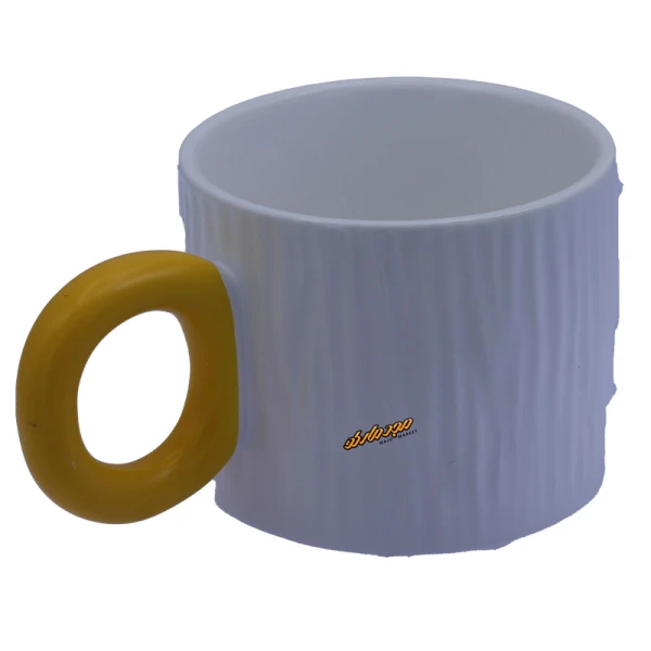 ماگ ساده سفید دسته دایره زرد