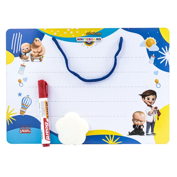 دارای یک تخته پاک کن و یک ماژیک وایت برد