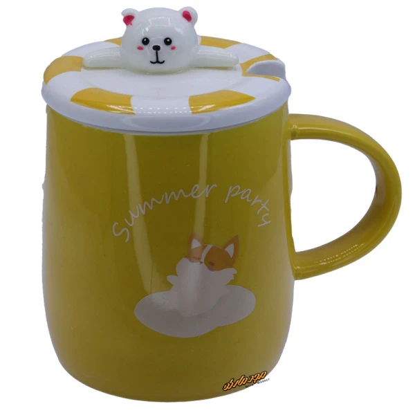 ماگ فانتزی زرد طرح خرس در برجسته