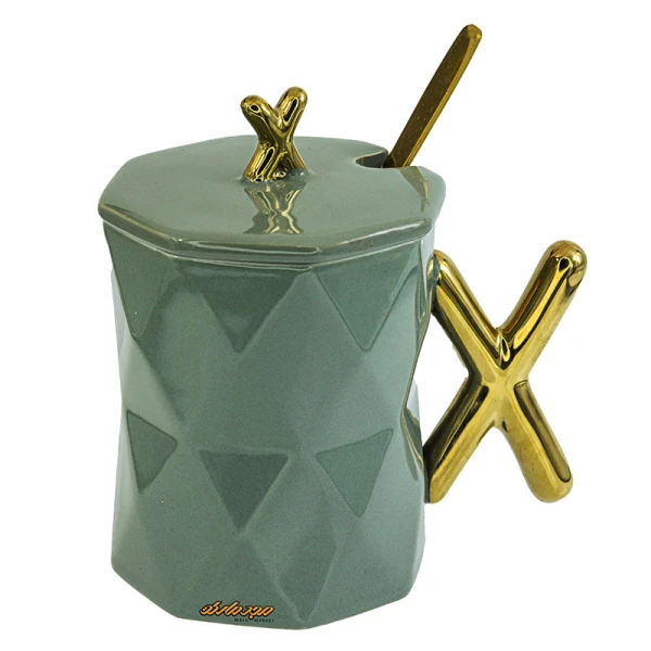 ماگ فانتزی سبز متالیک طرح دسته طلایی