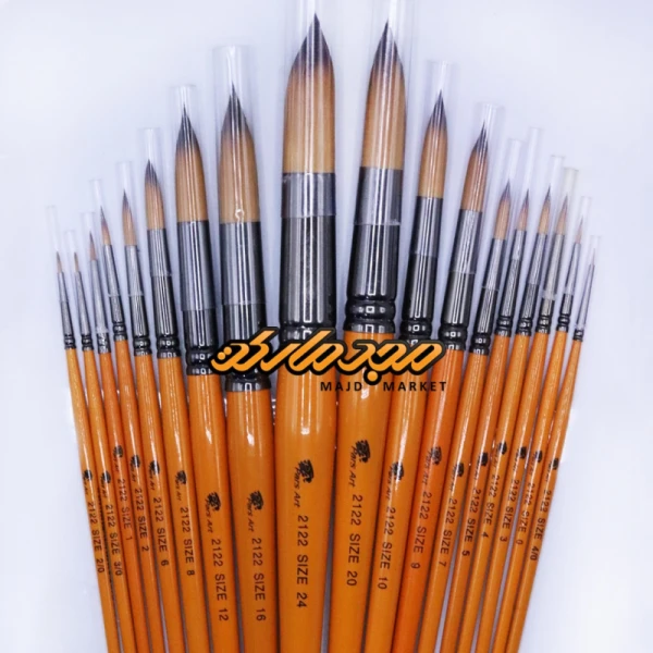 یکی از لوازمی که برای نقاشی لازم است قلمو می باشد. قلموهایی که برای نقاشی به کار برده می شوند باید با کیفیت و با دوام باشند. قلموهای پارس آرت یکی از بهترین نوع قلموهای موجود در بازار هستند که توجه هر هنرمندی را به خود جلب می نماید. می توان گفت بیشترین و پرکاربردترین ابزار در نقاشی قلمو است. قلموها در سایزها و مدل های مختلفی در بازار وجود دارند که بسته به نوع کاربرد و تکنیک دسته بندی می شوند. ست 18 عددی قلم 2122 پارس آرت از دسته ی چوبی ساخته و رنگ میشود و قلم مو در دست به شکل متعادل و راحت قرار میگیرد.فرول نام بخشی از قلم مو است که دسته و موها را به هم متصل میکند. فرول این قلمو از فلز نیکل و آلومینویم ساخته میشود و به همین دلیل فرول های قلم موی پارس آرت زنگ نمی زند.موی استفاده شده در این قلم مو نرم و گرد است به همین دلیل برای آبرنگ،گواش و اکرولیک مناسب میباشد. از قلموهایی که موهای نرم دارند برای کار با رنگ روغن یا رنگ اکریلیک استفاده می شود و همچنین از قلمو های سرگرد و سرکج و شمشیری برای آبرنگ و گواش استفاده می شود . قلموهایی که موهای زبر دارند برای سیاه قلم ،رنگ روغن ، رنگ اکریلیک و طراحی استفاده می شوند. قلموهایی که موهای نیمه زبر دارند برای طراحی سیاه قلم و اکریلیک بسیار مفید هستند. ست 18 عددی قلم 2122 پارس آرت از دسته چوبی ساخته و رنگ شده (نارنجی) است که فرم ساخت ان بسیار ساده و سبک است که در دست به شکل متعادل و راحت قرار میگیرد. موها توسط بخشی به نام فرول بر روی دسته قرار گرفته اند (نام بخشی از قلمو است که دسته و موها را به هم متصل میکند). دیگر ویژگی این نوع ست 18 عددی قلم 2122 پارس آرت این است که دسته های بلند دارند و بسیار برای رنگ روغن و سیاه قلم مناسب هستند و همچنین موهای طبیعی که دارند کار با آنها را برای استفاده کنندگان راحت تر کرده است. قلموهای پارس آرت در تمام سبک ها مورد توجه هنرمندان قرار گرفته است.- دارای کیفت عالی