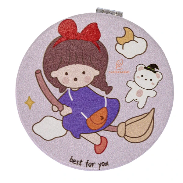 آینه گرد جیبی (آرایشی) فانتزی یاسی طرح دختر و جارو 105 (2)
