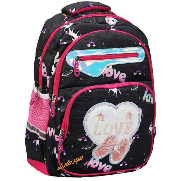 کوله پشتی مشکی صورتی هولوگرامی طرح قلب