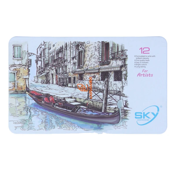 مداد رنگی 12 رنگ جعبه فلزی تخت طرح ونیز مدل آرتیست اسکای SKY