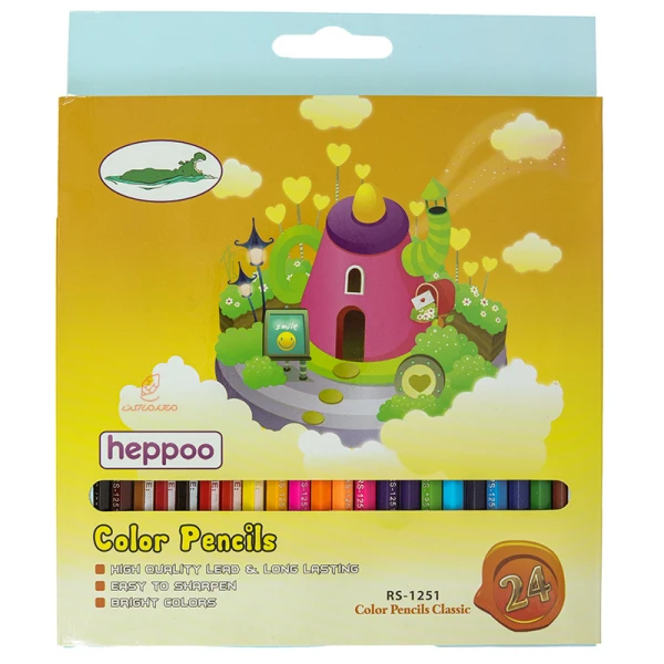 مداد رنگی 24 رنگ جعبه مقوایی طرح خانه صورتی هپو HEPPOO
