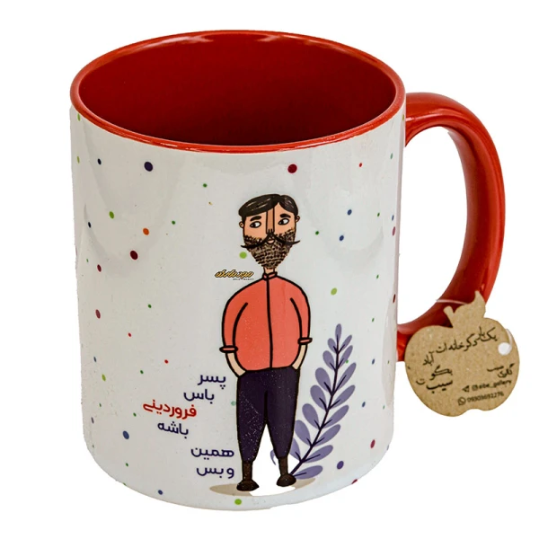 ماگ ماه تولد سفید و قرمز طرح پسر فروردینی