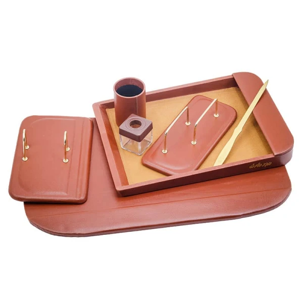 سرویس اداری رومیزی کد 1 عسلی چرم چوب CHARM CHOOB