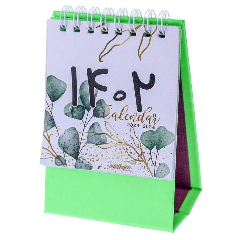 تقویم رومیزی 1402 سبز فسفری کلیپس مدل یونیک