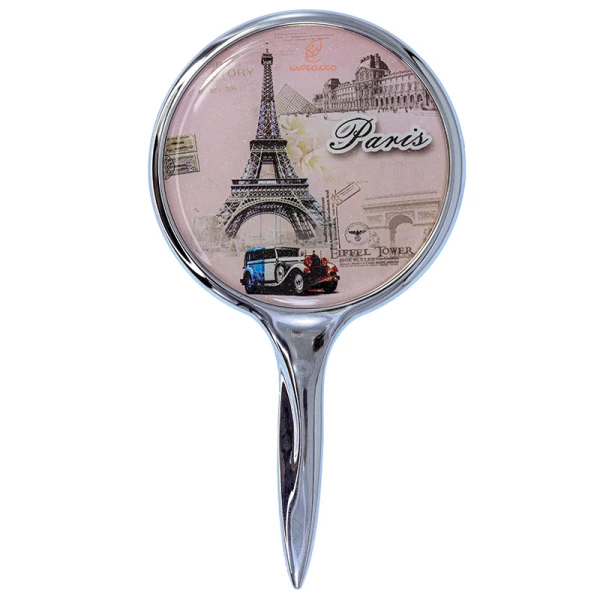 آینه دسته دار (آرایشی) فانتزی صورتی طرح برج ایفل و ماشین (2)